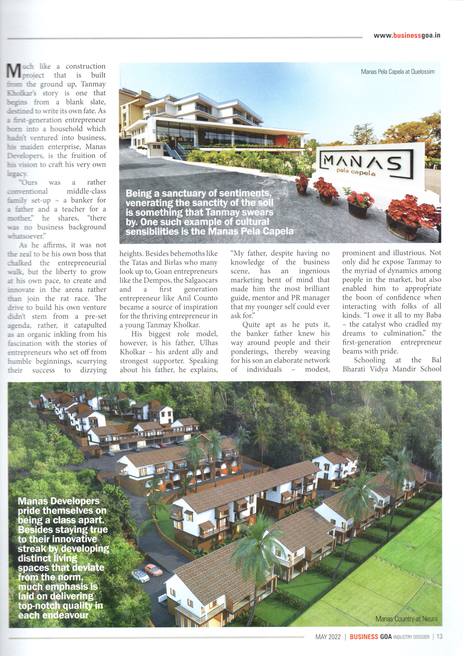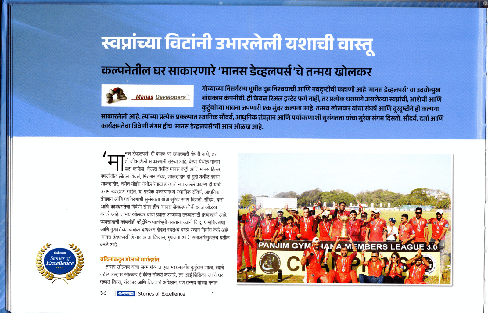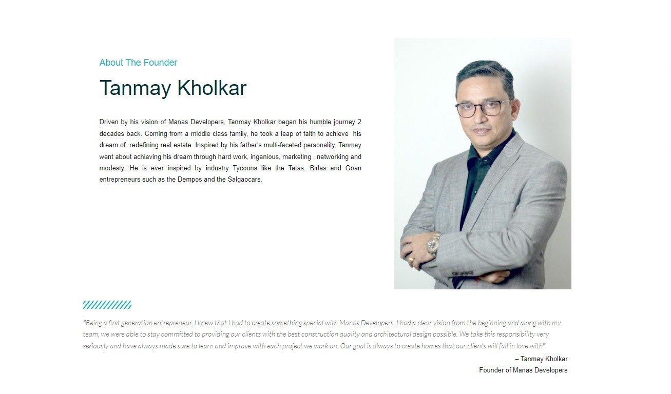 At Manas Developers, we’re not just about bricks and mortar — we’re about creating spaces where life happens. Founded by Tanmay Kholkar, a passionate entrepreneur from Goa, we’ve spent years building homes that blend modern comfort with the natural beauty of our surroundings.