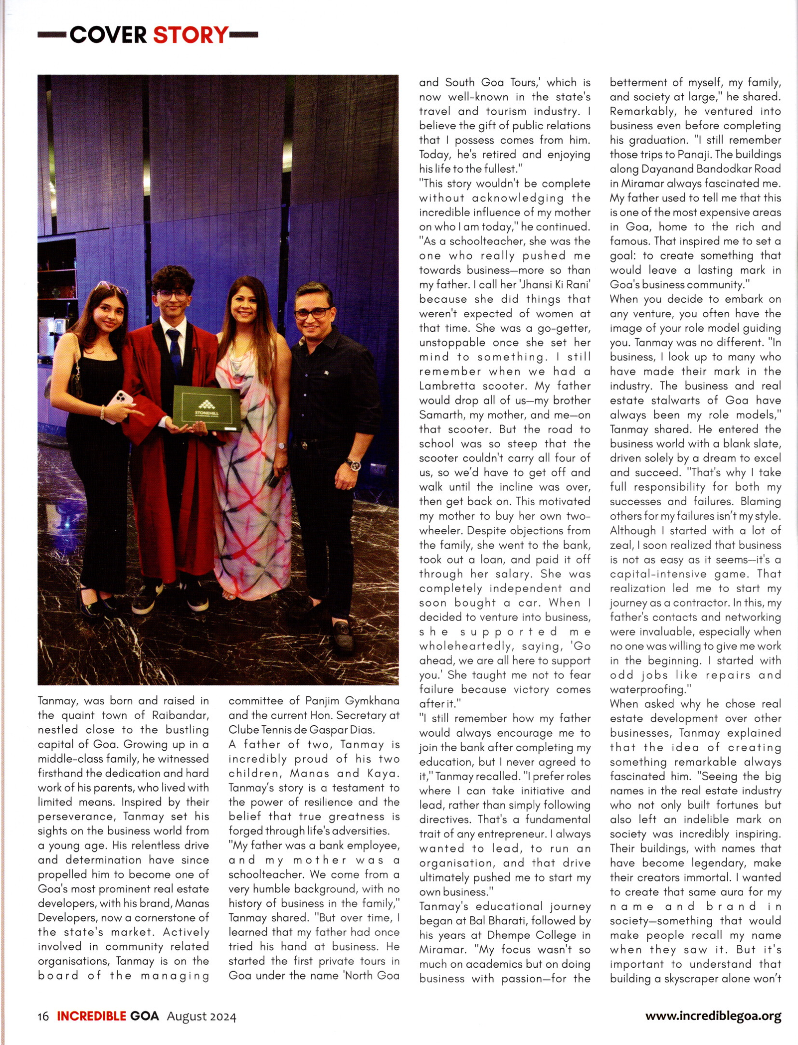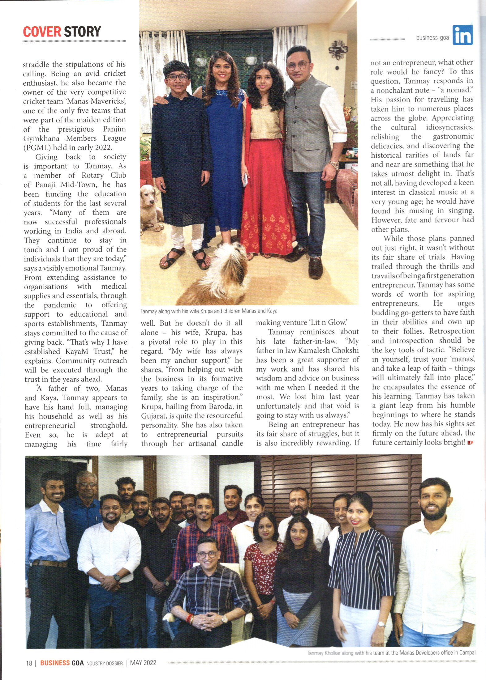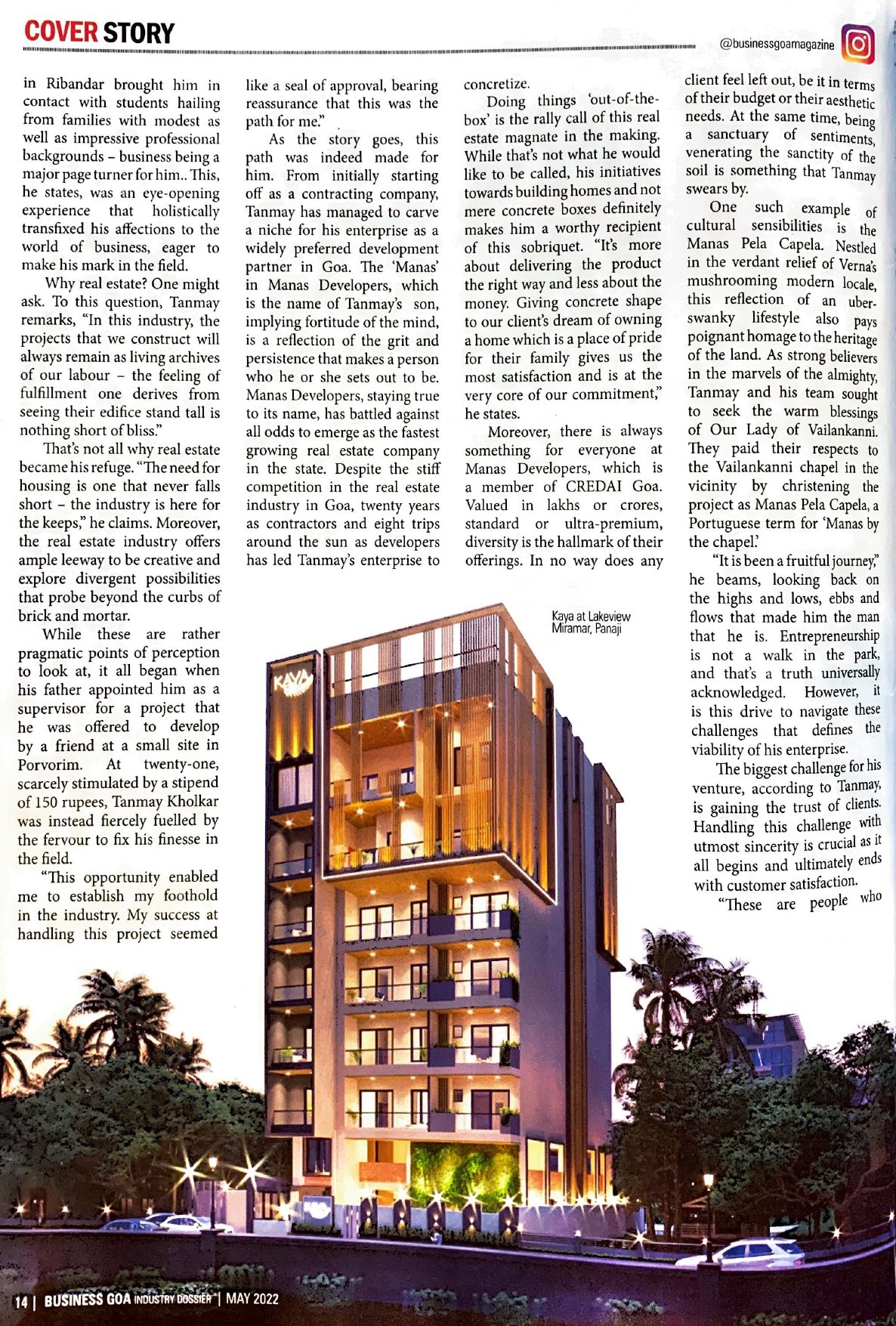 At Manas Developers, we’re not just about bricks and mortar — we’re about creating spaces where life happens. Founded by Tanmay Kholkar, a passionate entrepreneur from Goa, we’ve spent years building homes that blend modern comfort with the natural beauty of our surroundings.